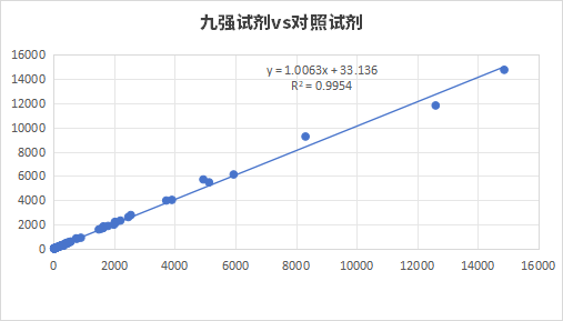 九強(qiáng)試劑與市場主流對照試劑比對一致性良好,R2>0.99